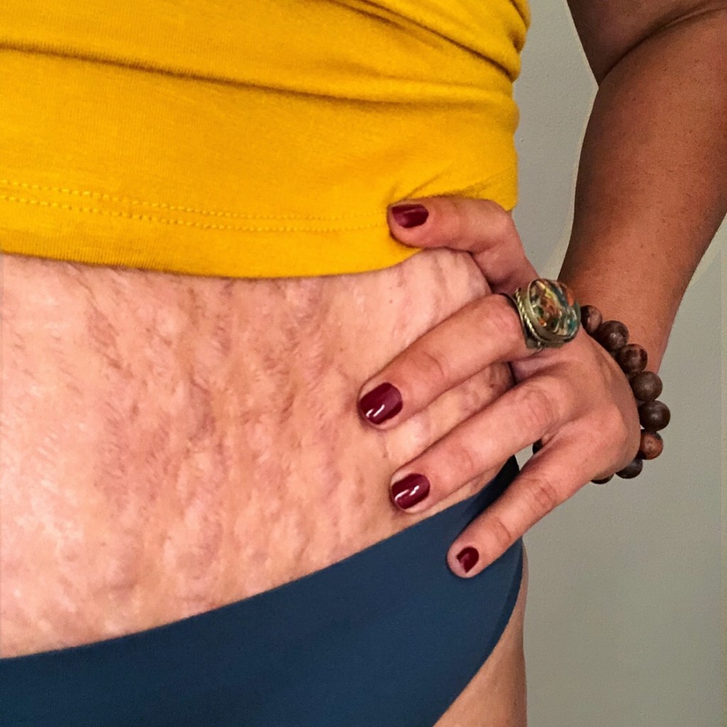 Please don’t feel ashamed of your body. It’s so normal to have stretch marks and scars.