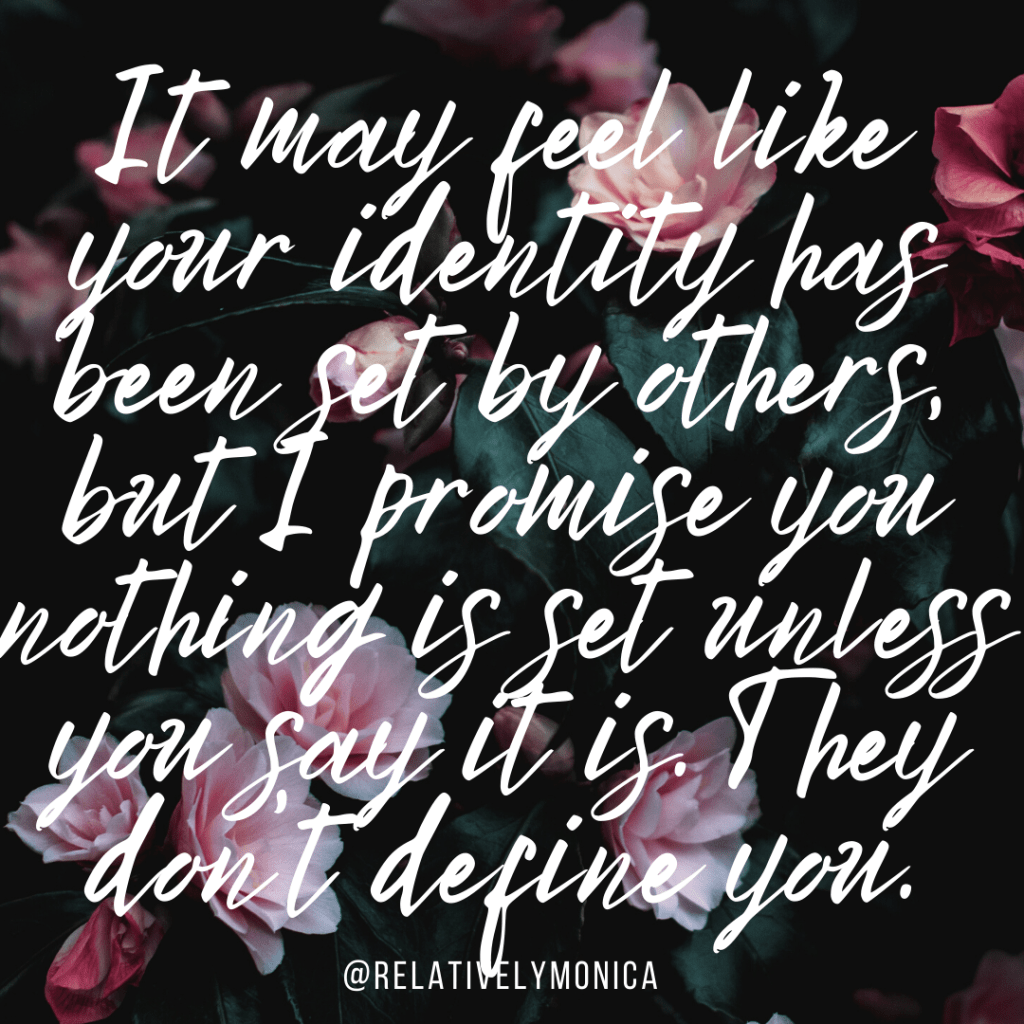 It may feel like your identity has been set by others, but I promise you nothing is set unless you say it is. They don’t define you.
