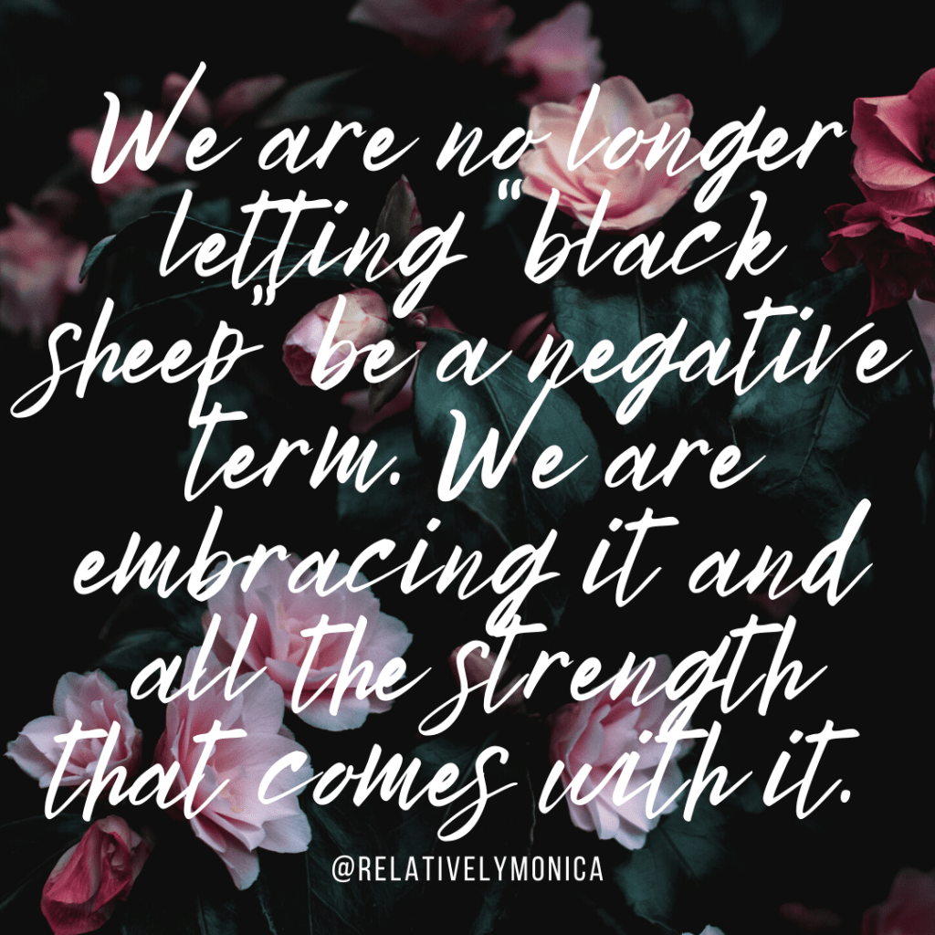 To the black sheep and the scapegoats. Please don’t see yourself as rejected when in actuality, you have broken free and set yourself apart from the unhealthy family dynamics. You, my friend, see through the mess and refuse to sweep the issues under the rug.
