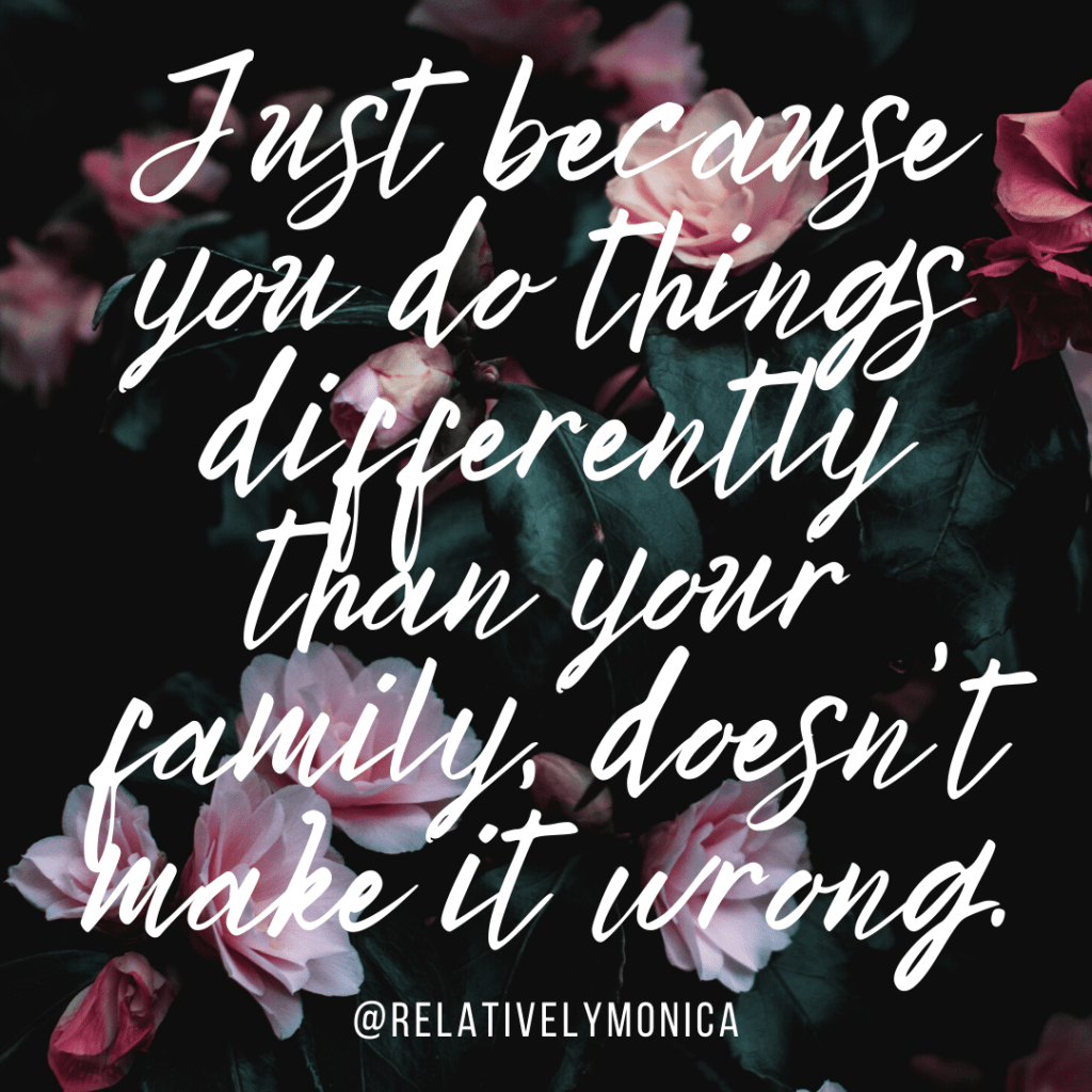 Just because you do things differently than your family, doesn’t make it wrong. Keep moving. Keep walking toward your happiness and continue loving yourself.